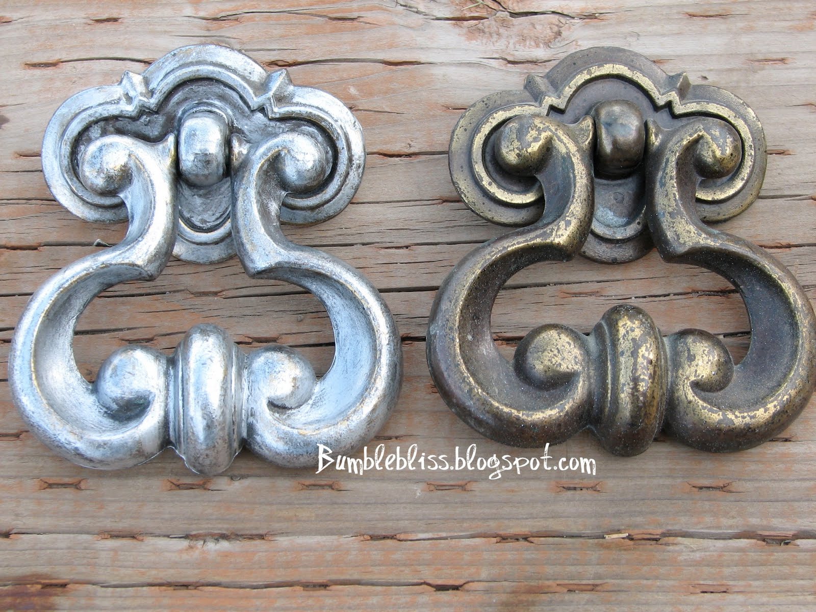 Awesome, huh! The picture doesn't really do it justice. If you see it in person, it isn't quite so silver. It looks very distressed. I really wanted to do a pewter kind of patina with gray undertones instead of the brass/bronze undertones but I couldn't work it out this time. I'm going to try it out with my completed dresser and we'll see how it works out. If it doesn't, then I'll try something else.